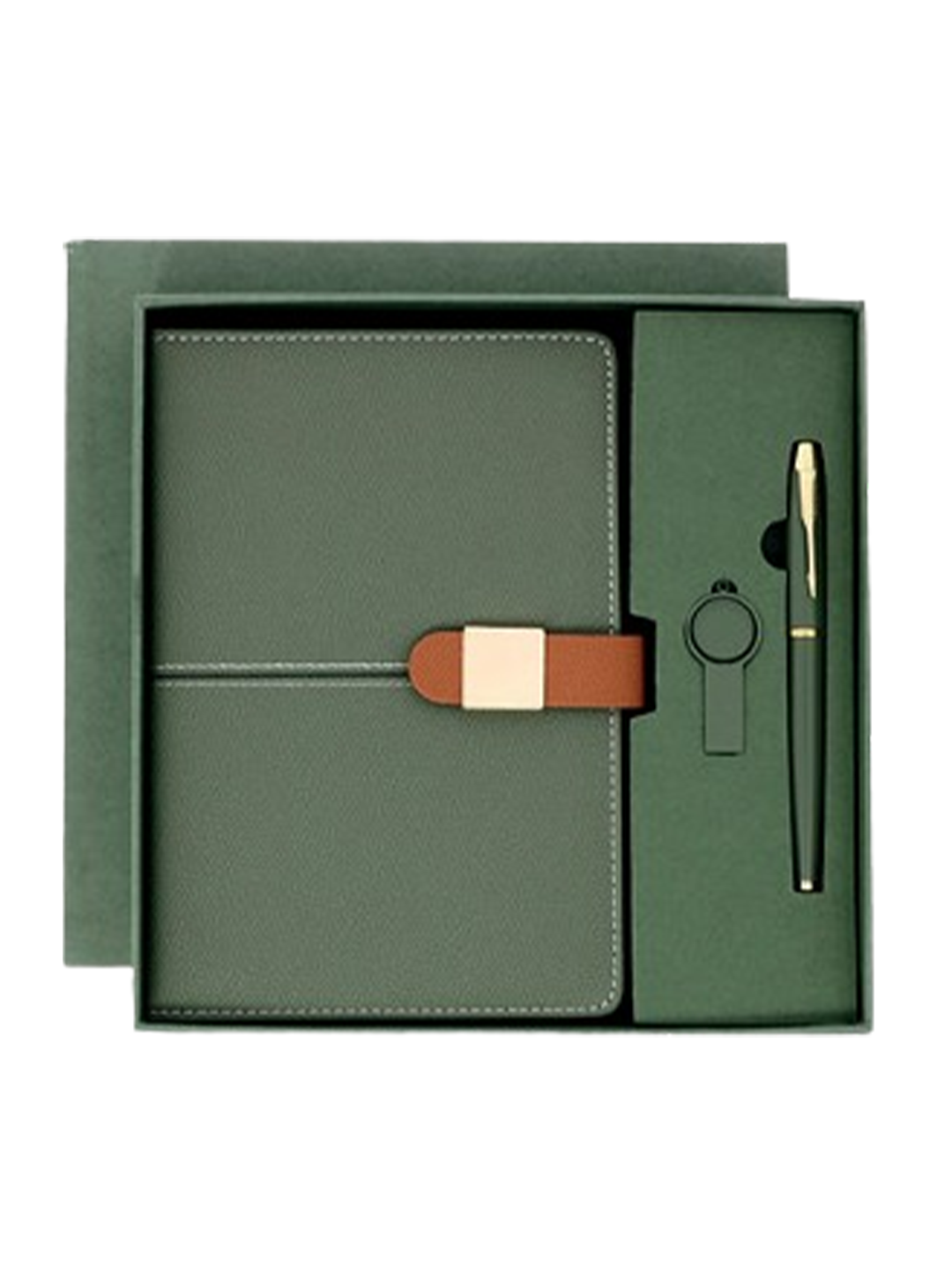 Coffret raffiné comprend un notebook, un stylo à bille et un porte-clés, tous assortis avec une finition en simili cuir de haute qualité.